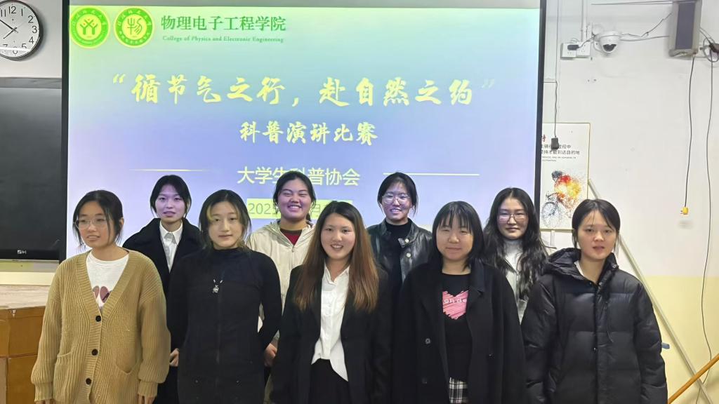 为弘扬节气文化,提升学生的科学素养,10月25日,黄色网站 于教三205举办“循节气之行,赴自然之约”科普演讲比赛。此次活动的评委由大学生科普协会的社长与部长担任。
