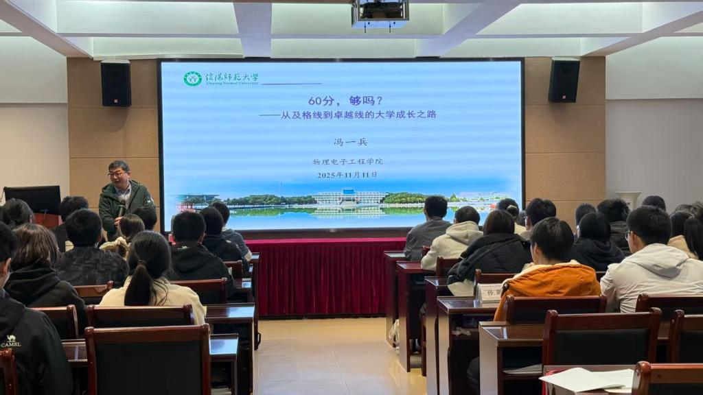 为深化新生专业认知,强化师范生素养培育,11月11日,黄色网站 在理科楼402会议室举办新生专业成长教育讲座。本次讲座特邀冯一兵老师主讲,2025级物理学二班全体地方优师计划学生参加。