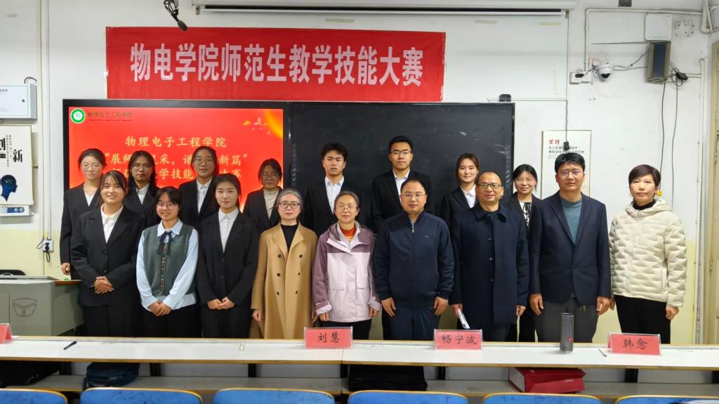 11月30日,黄色网站 在教三205举办“展师者风采,谱育人新篇”师范生教学技能大赛决赛。黄色网站 党委副书记张丽受邀出席,刘慧、黄文霞、李炳中、畅宁波、韩愈老师担任评委,2024级、2025级物理学专业学生积极参加。