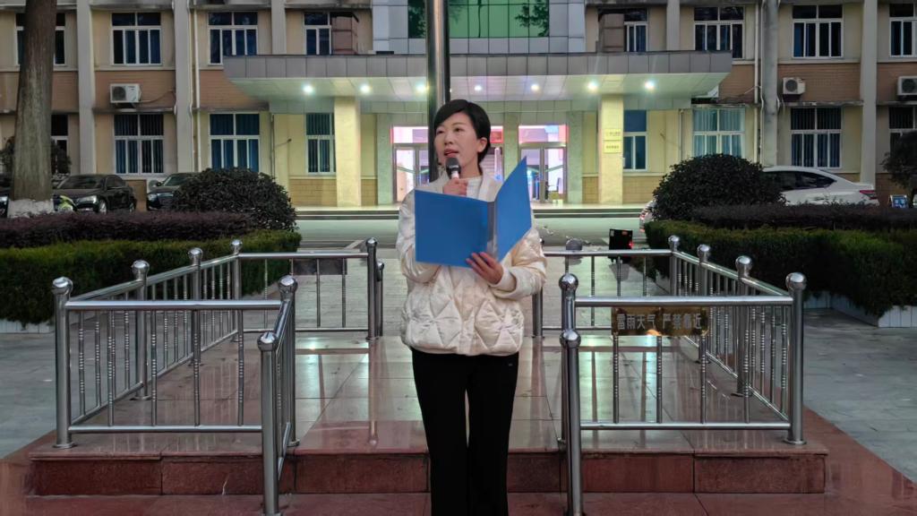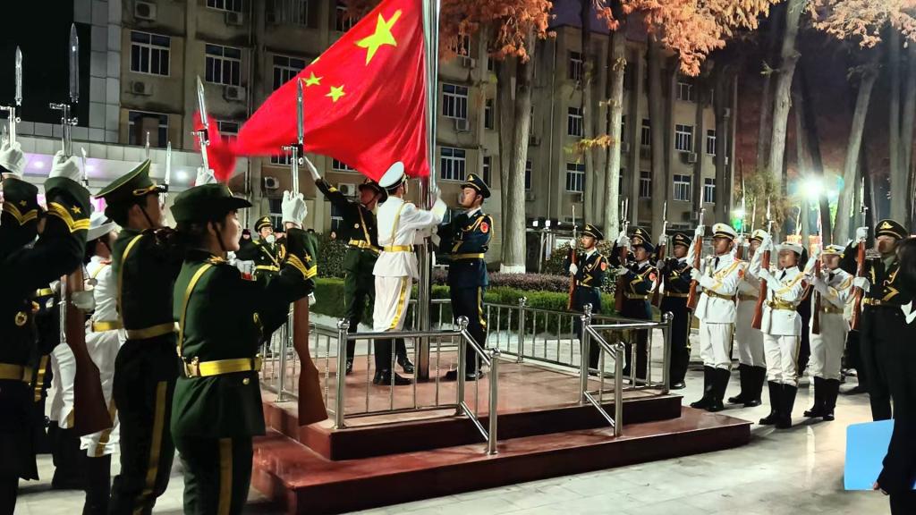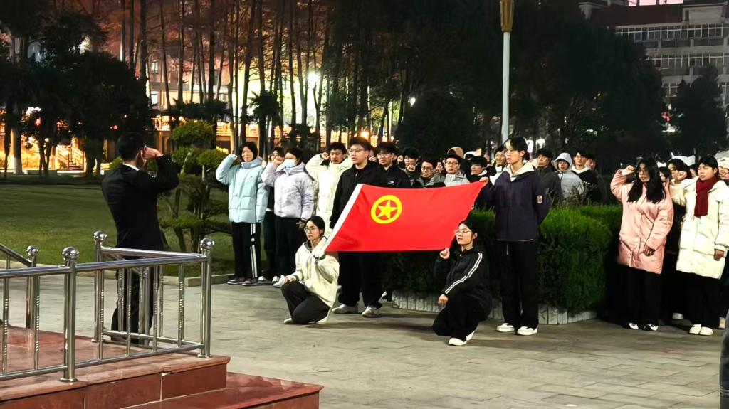 12月8日,黄色网站 在行政楼前隆重举行了升旗仪式,黄色网站 党委副书记张丽、武装干事赵雪出席活动,学生党员、学生干部代表及2025级全体新生共同参与此次活动。