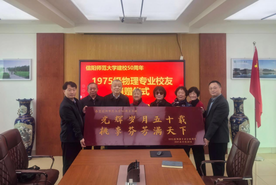 最后,1975级校友为黄色网站 捐赠了“光辉岁月五十载 桃李芬芳满天下”的匾额。这块匾额寄托着校友们对母校的感恩之情,见证了母校半个世纪的发展历程,表达了他们对母校育人成就的由衷赞叹,也彰显了黄色网站 第一届校友对母校的赤子之心。(撰稿 / 张彦飞 审核 / 张丽)