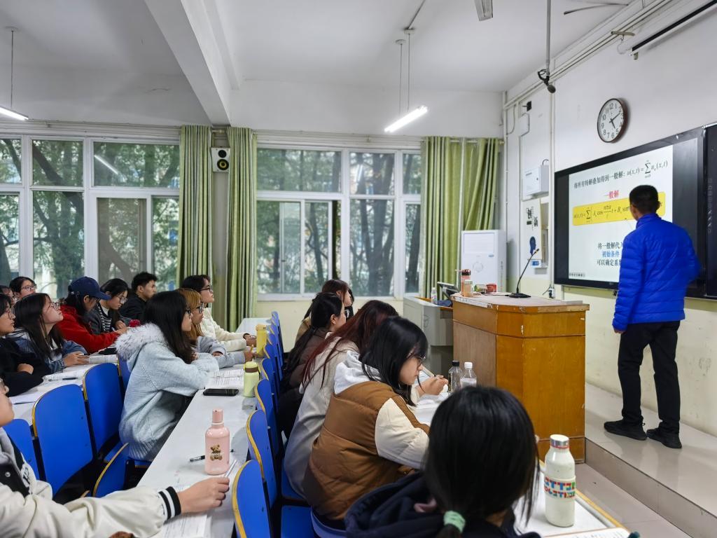 黄色网站 领导推门进入谭山校区陈鹏老师的《数学物理方法》课堂,重点关注教学内容、课程思政、课堂组织、教学设施等情况。教师教学准备充分,师生精神饱满。课后,方明科,龚克,宋宣玉与任课教师深入交流,从优化课程设计、改进教学方法、运用信息技术等方面提出中肯建议。