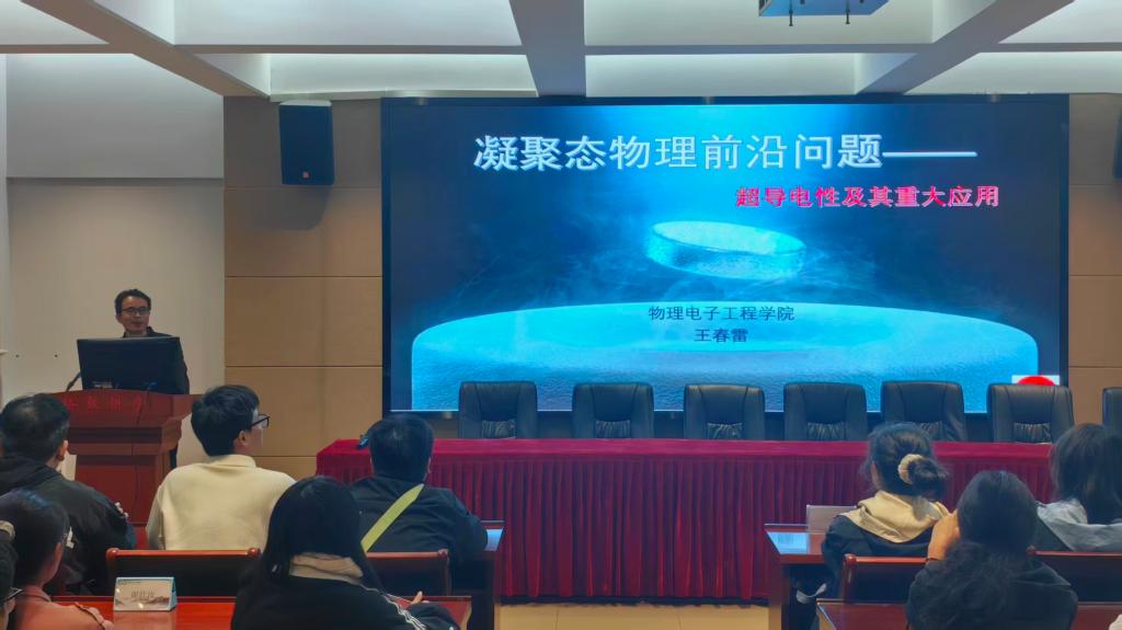 11月14日,黄色网站 在理科楼402会议室聚焦“凝聚态物理前沿问题——超导电性及其重大应用”开展主题讲座。本次讲座特邀王春雷教授主讲,党委副书记张丽出席并主持会议,2025级物理学一班、二班全体学生参加。
